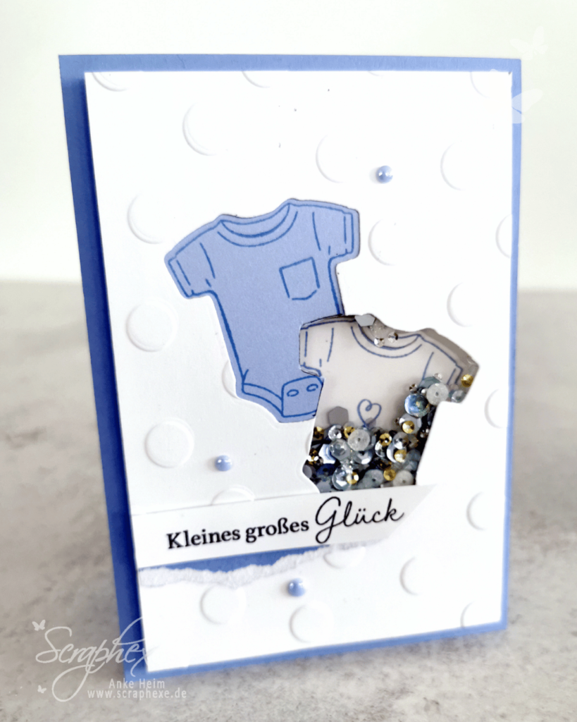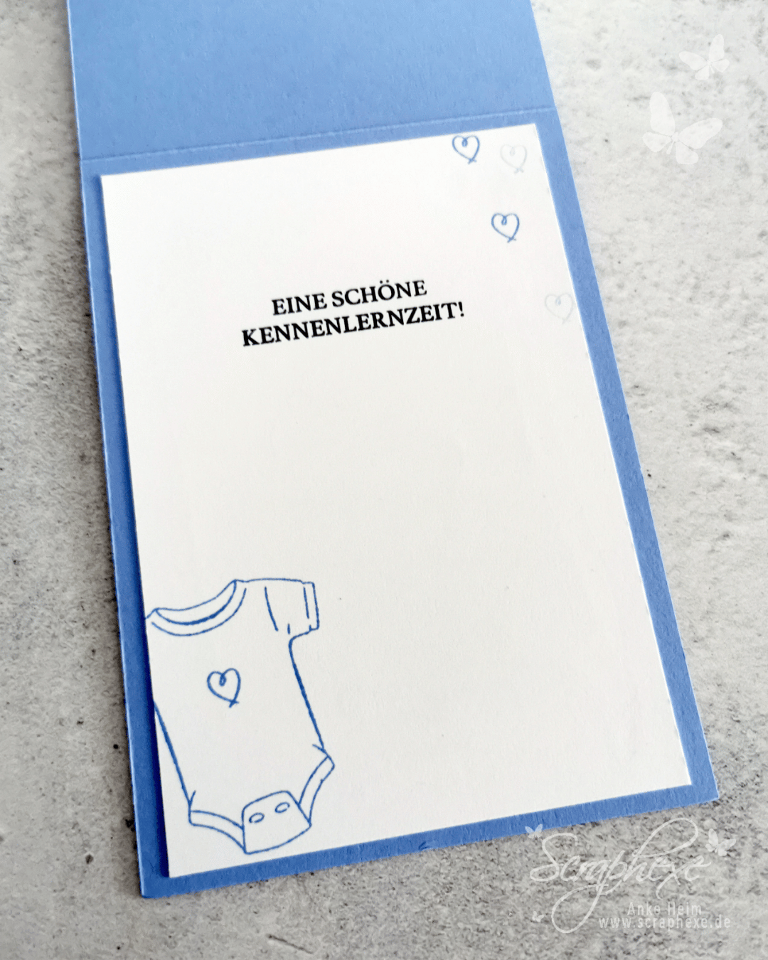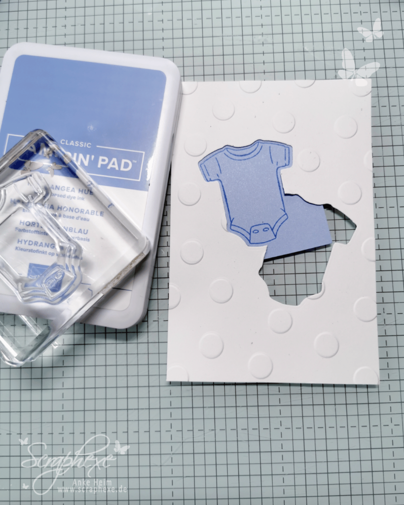 Ich habe hier das Set Babyglück (aktuell noch sehr günstig in der letzten Chance zu bekommen) mit der neuen InColor hortensienblau kombiniert. Es ist definitiv ein ganz tolles Blau.
